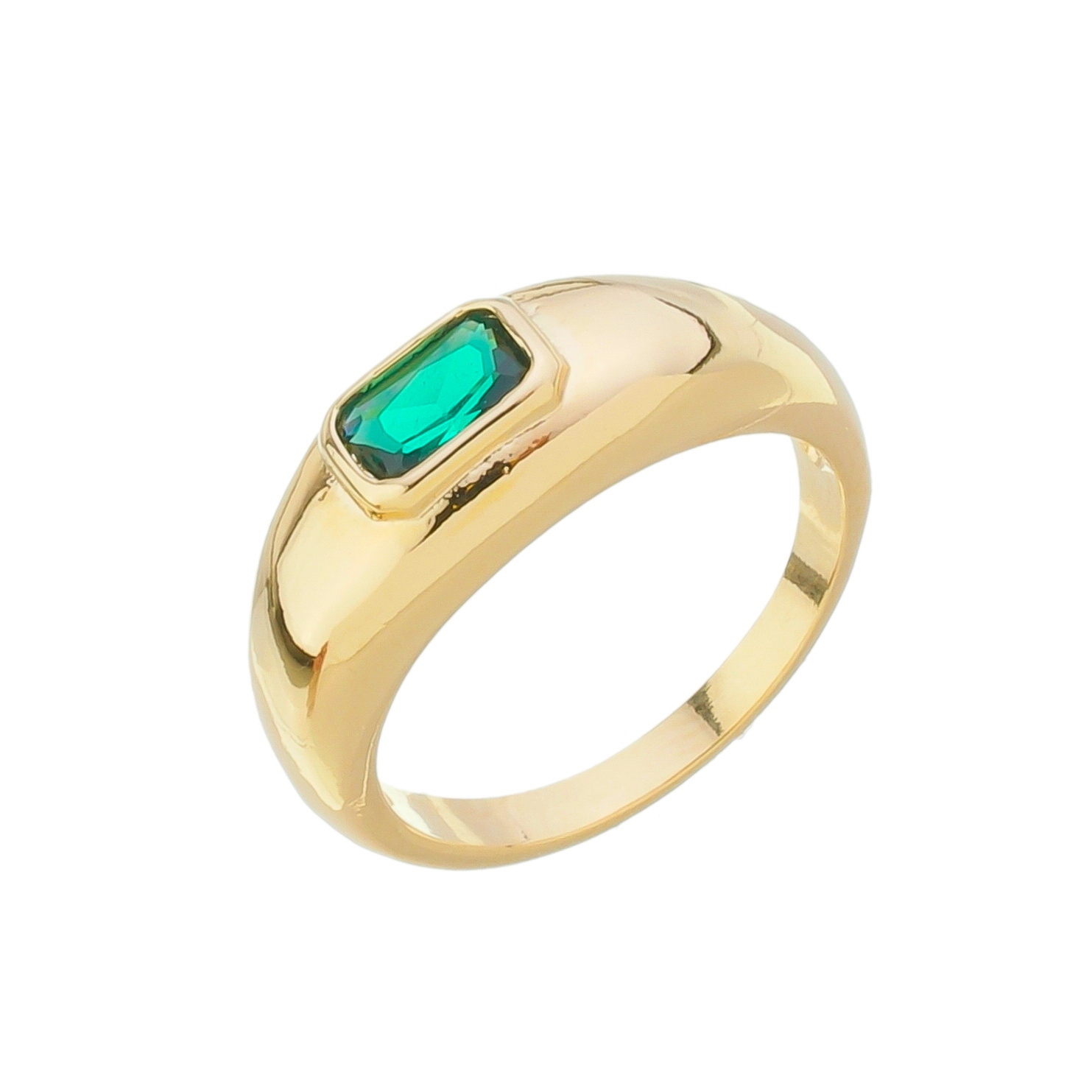 Anel abaulado com cristal esmeralda