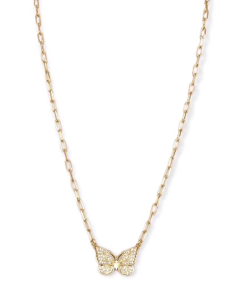 Colar de elos com pingente borboleta cravejado com microzircônias cristal