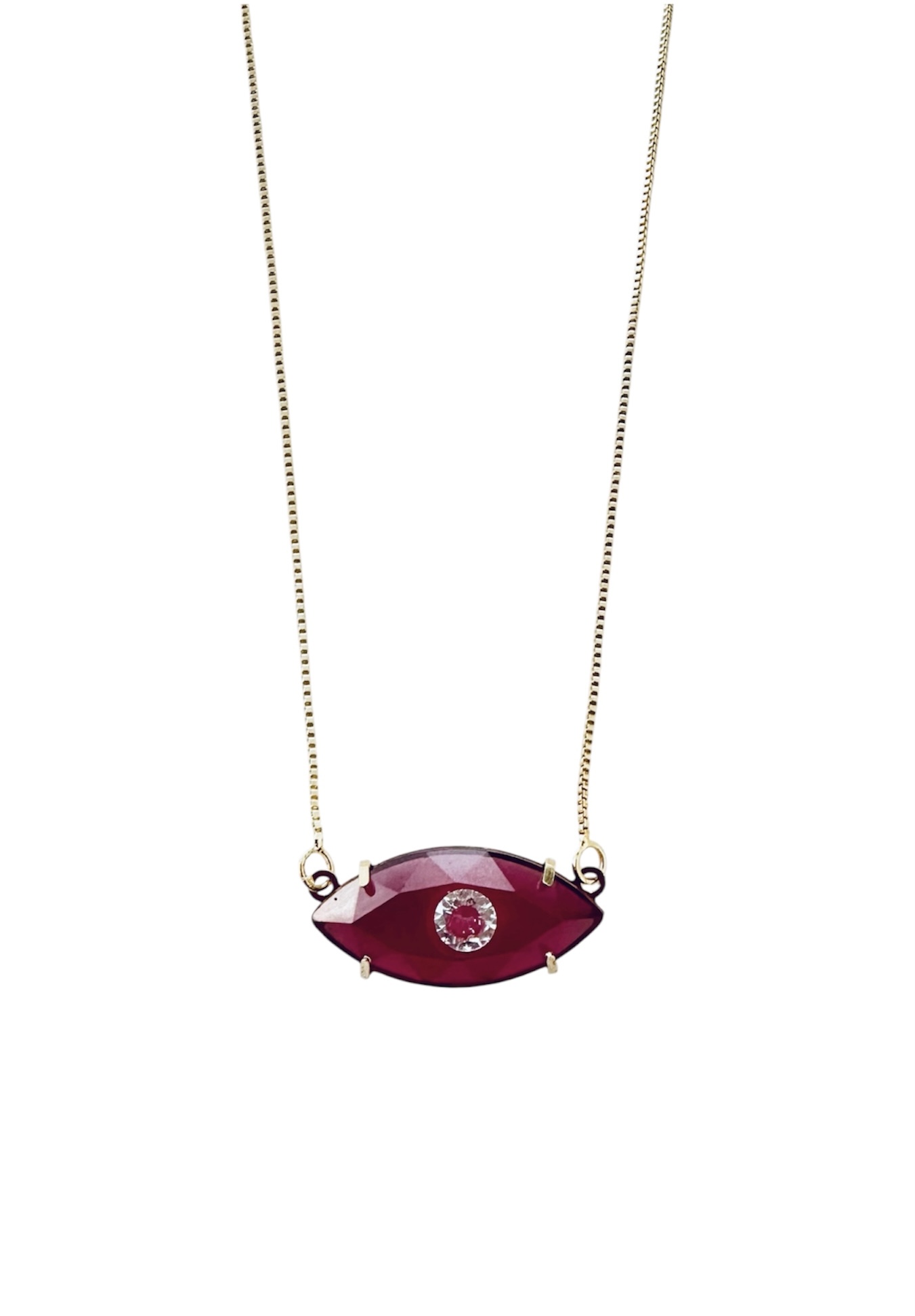 Colar veneziana com pingente olho grego de cristal cor fúcsia