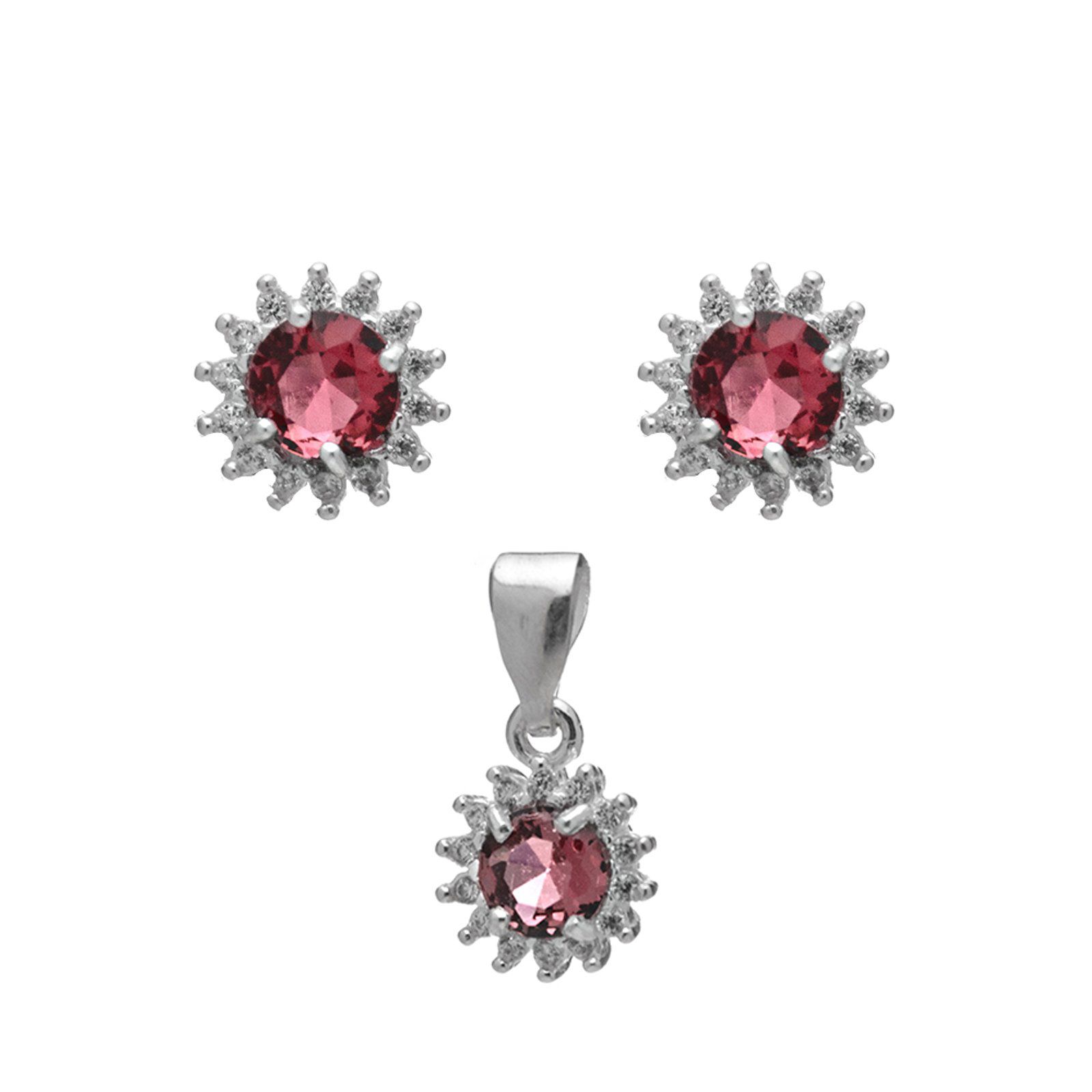- 1 par de brincos com zircônia redonda rubi e microzircônias cristal (7 mm de altura x 7 mm de lagura)
