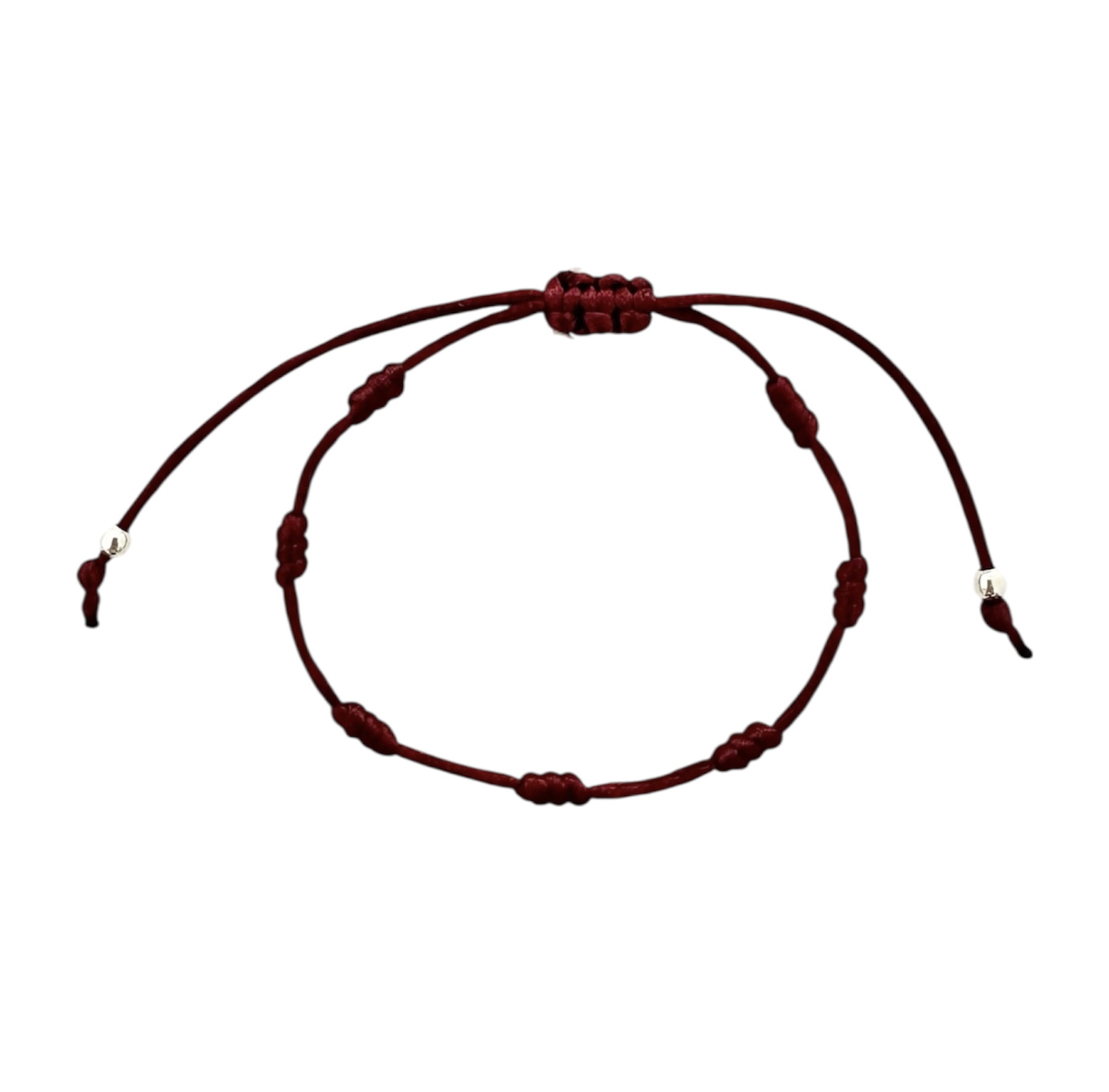 Fabricada com fio de seda cor vinho e acabamentos de Prata 925.